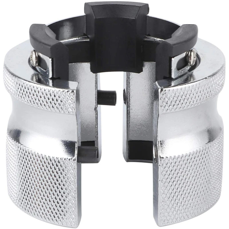 The main difference is the adjustable steel ring from 30 to 45 mm, allowing one tool to be used for several forks, unlike non-adjustable models that only suit a specific diameter. This improves versatility and reduces the need for multiple tools.