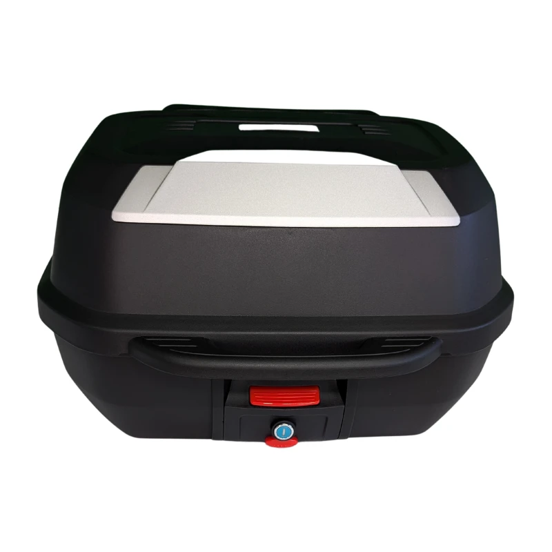 Unlike some basic 47L top boxes with thinner plastics (often < 2 mm), this model uses reinforced ABS of approximately 3 mm and internal reinforcements in critical areas, offering better absorption of moderate impacts. In addition, the reflective inserts are approved to ECE R104, which increases their effectiveness and regulatory compliance.