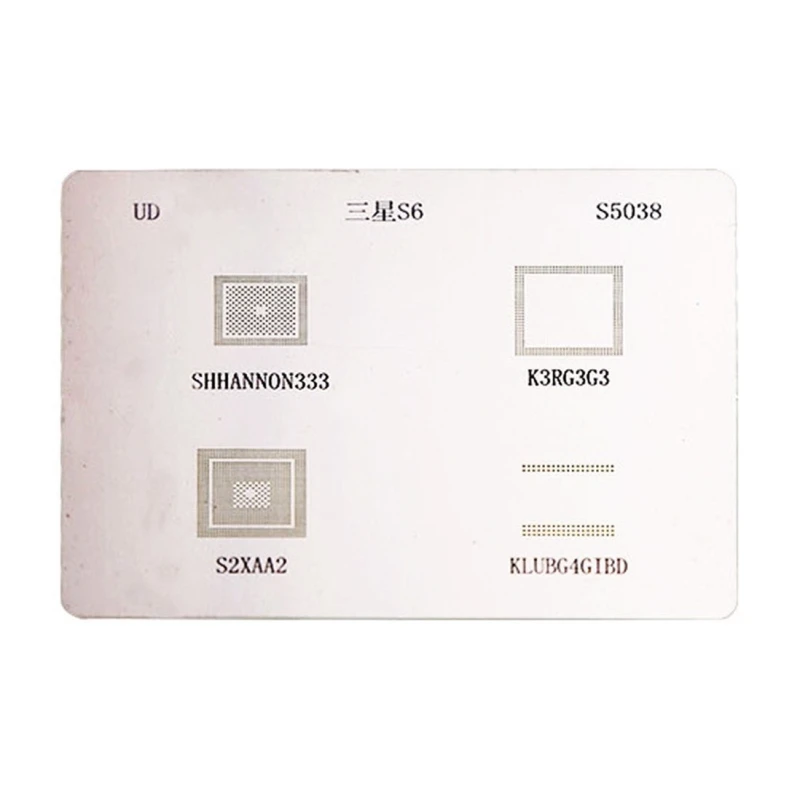 This template is compatible with soldering equipment and tools that use direct heat for the reballing process. It is an essential accessory for those working with Samsung S6 devices and looking to improve efficiency and precision in their repairs.