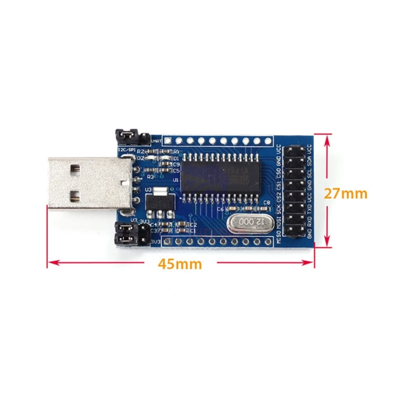 It is used to convert USB to UART, I2C, SPI and parallel port interfaces, allowing programming and debugging of electronic devices.