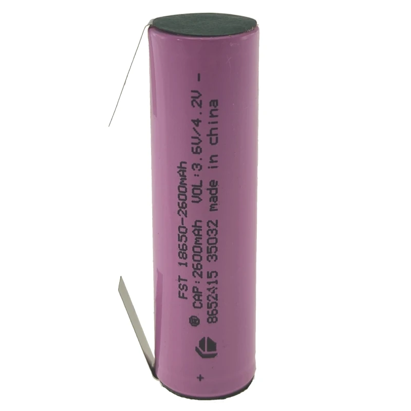 High-quality 18650 rechargeable battery 2600mAh 3.7V with solder tabs