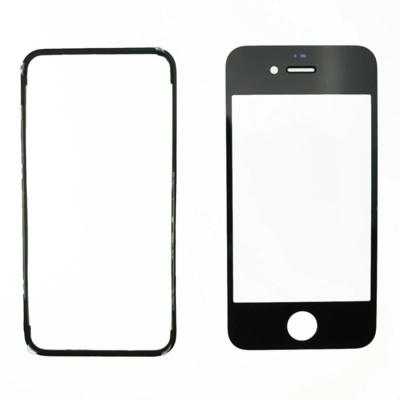 - Black glass screen for iPhone 4 with adhesive frame included.