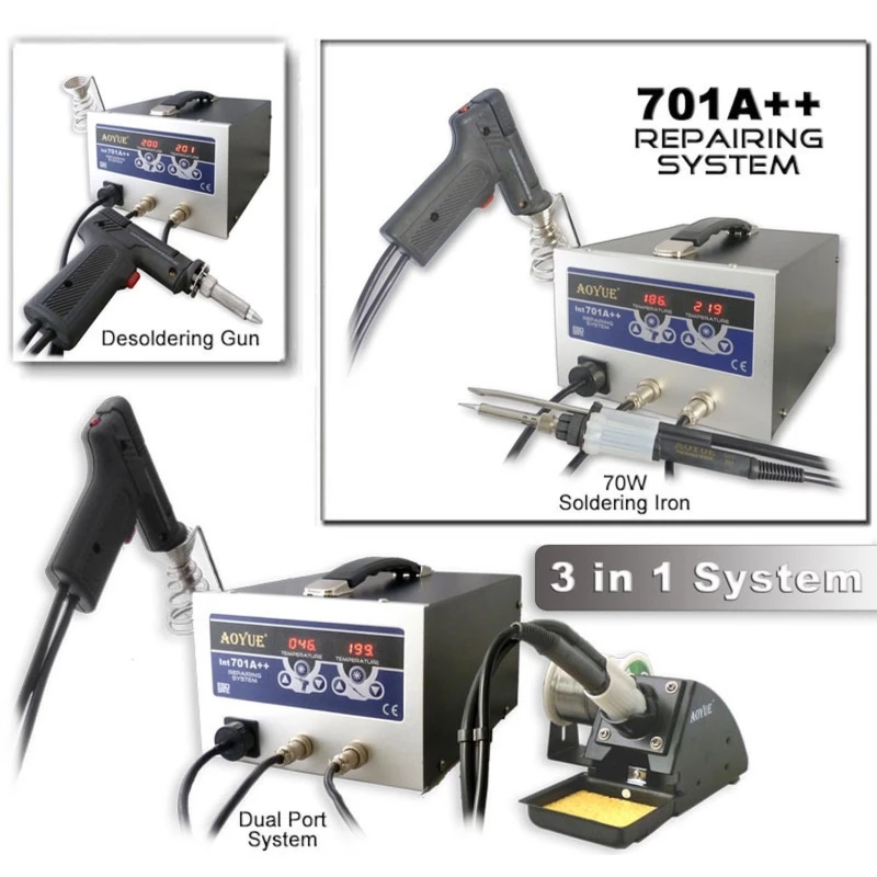 Aoyue 701a++ soldering station with integrated soldering iron and desoldering gun