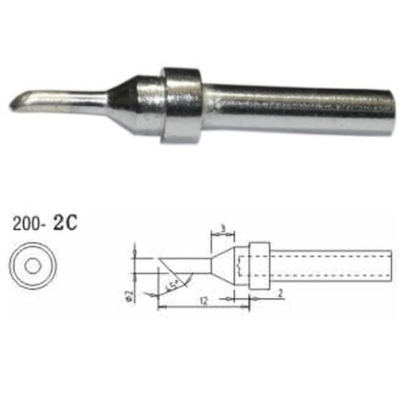 The tip is made from copper with an iron coating and nickel plating to increase durability and corrosion resistance. Approximate dimensions are 50 mm total length and 2 mm tip diameter (type 2C). These figures may vary slightly depending on the production batch.