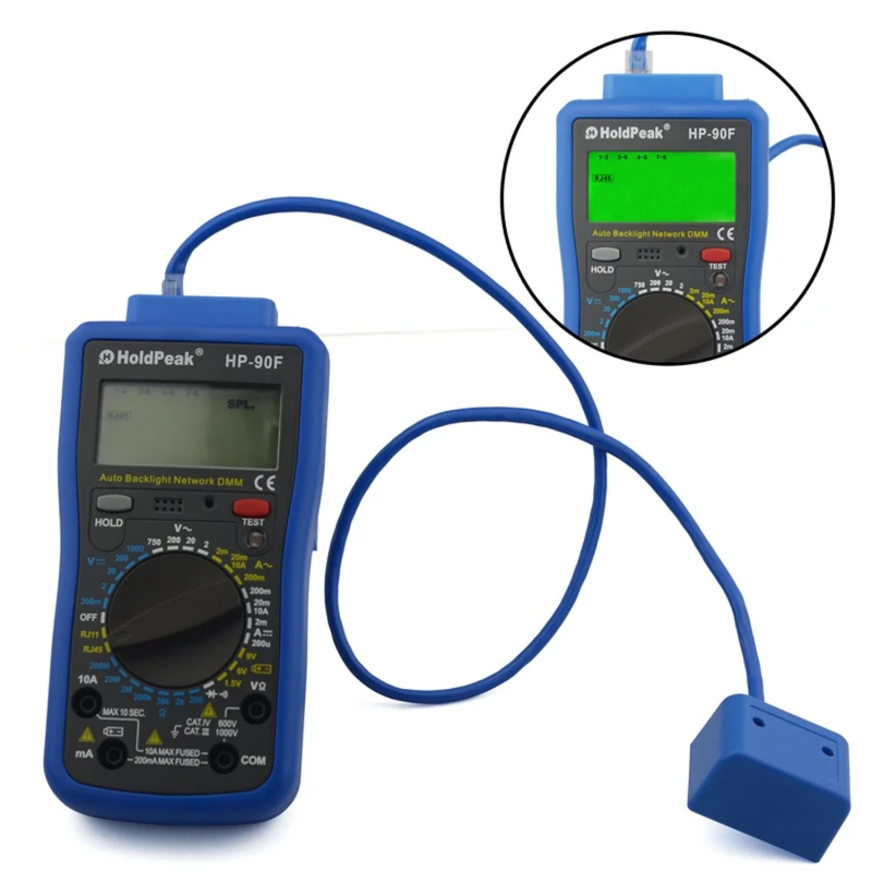 HoldPeak HP-90F Digital Multimeter with RJ11 and RJ45 Tester